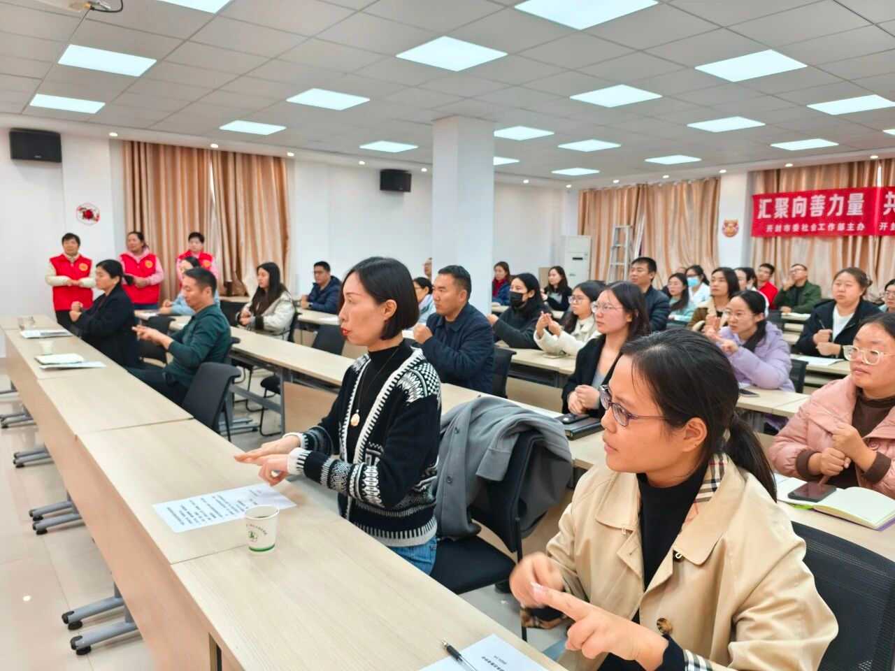 | 为深化“五进”服务理念,推动专业助残服务深入机关系统,开封市志愿者协会“手语工作室”于10月23日在市残联六楼会议室,为全市残联系统干部职工开展了一场系统化、实用化的手语培训。此次活动作为2025年省级志愿服务示范培育项目的重要一环,充分体现了“专业社工+志愿服务”模式在构建聋健共融社会中的实践价值。 项目团队基于优势视角,在培训前与市残联深入对接,精准识别服务场景与学习者基础,聚焦“日常交流手语”与“残疾证补办流程手语”两大实用模块,量身定制教学内容。培训中,曹玉芬与鲍冰两位老师发挥各自专长,结合语法解析与聋人文化视角,实现教学互补;现场设置实景测试环节,由聋人志愿者担任裁判,不仅及时检验学习成效,更体现了“以聋人为师”的优势理念,强化了受训者的服务信心与实操能力。 此次培训也迎来省委社会工作部选派专家及本地社工部门负责人的全程参与与专业督导。专家吉龙龙在肯定项目“按需定制、实效检验”做法的同时,提出“教案视频二维码化”等建议,助力服务提质增效;单世迪则从组织可持续发展角度,为团队骨干培养与新老交替提出建设性意见。这些指导进一步丰富了“专业社工引领志愿服务”的内涵,为项目注入了持续发展的动能。 未来,开封市志愿者协会将继续依托“手语工作室”,以优势视角挖掘聋人群体与志愿者双方的潜能,以“五进”机制拓宽服务覆盖领域,在“专业社工+志愿服务”的融合路径上持续探索,搭建更具专业性、系统性与生命力的聋健沟通桥梁。(文 曹玉芬)