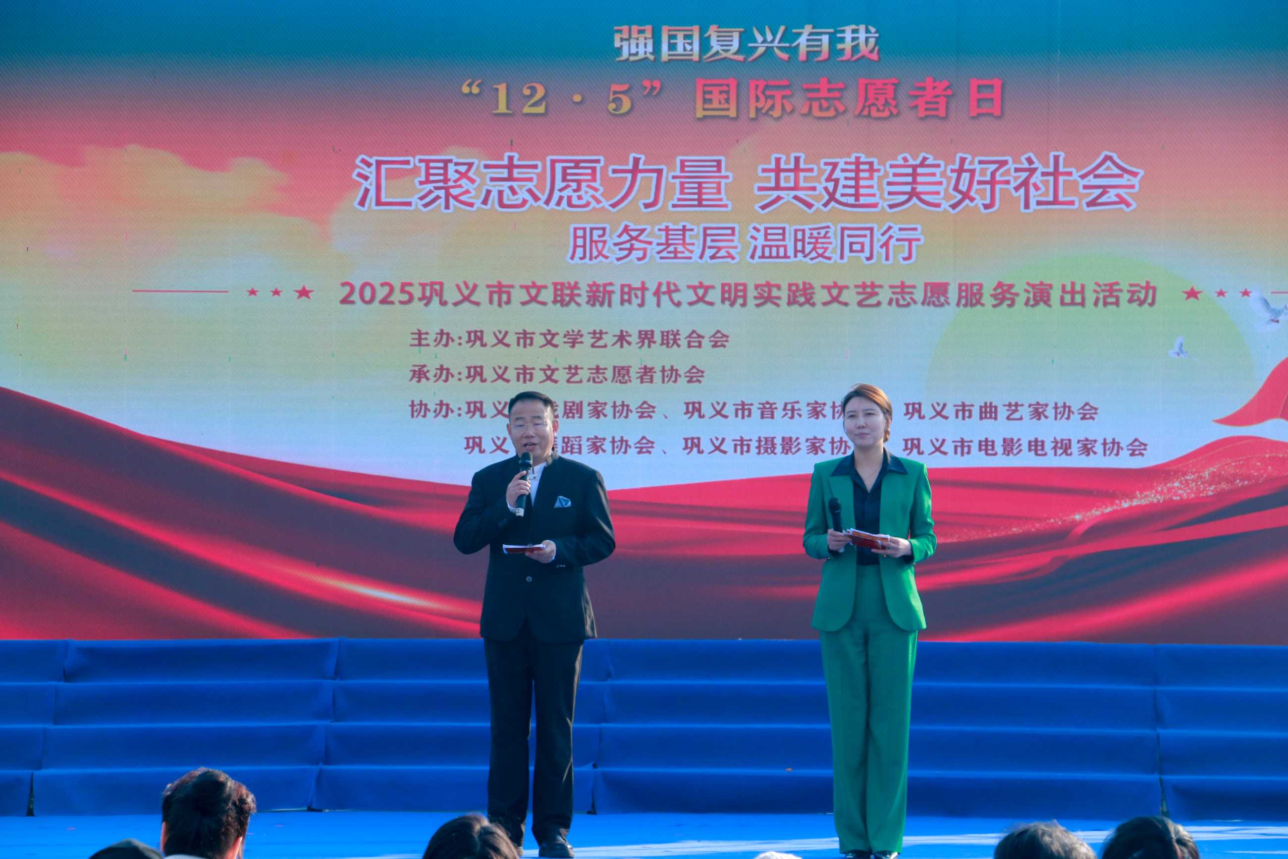 为大力弘扬“奉献、友爱、互助、进步”的志愿服务精神,在第40个“12·5”国际志愿者日来临之际,12月5日,由巩义市文联主办,市文艺志愿者协会承办,市戏剧家、音乐家、曲艺家、舞蹈家、摄影家、电影电视家协会协办的“汇聚志愿力量 共建美好社会 ”2025巩义市文联新时代文明实践文艺志愿服务演出活动在宋陵公园北广场隆重举行。演出活动通过精彩纷呈的文艺演出,为现场500多名群众带来了一场视觉与听觉的文艺盛宴。 演出现场观众云集,气氛热烈。当天下午2点30分,文艺演出活动在开场舞《鲜艳的党旗》中拉开序幕,随后操舞《复兴大中华》、歌曲《世界赠予我的》、豫剧《朝阳沟》选段、模特时装秀《本色》、对唱《奔跑》、新疆舞《送你一朵玫瑰花》、曳步舞《那一道光》、河洛大鼓《炸糖糕》、合唱《领航》等节目轮番上演,精彩的演出引发观众席中欢呼与掌声如潮水般此起彼伏。 演出中,还穿插了宪法日有奖问答环节,“我国的基本大法是?”……在有奖问答环节,主持人问题刚出,现场群众便踊跃举手抢答,在轻松互动中掌握和增进了宪法常识。期间,市文联志愿者还向现场观众发放了普法宣传材料,有效提升了市民们的法律意识。 通过此次“12·5”国际志愿者日文艺演出活动的开展,进一步展现了巩义市文艺志愿者们服务社会的积极态度和良好风貌。下一步,巩义市文艺志愿者协会将在市文联的领导下,组织开展更多“接地气”的文化活动,通过文艺的力量,传递正能量,不断提升市民们的文化获得感与幸福感,为共建美好社会贡献力量。 编辑:白沙 摄影:付明钦 |