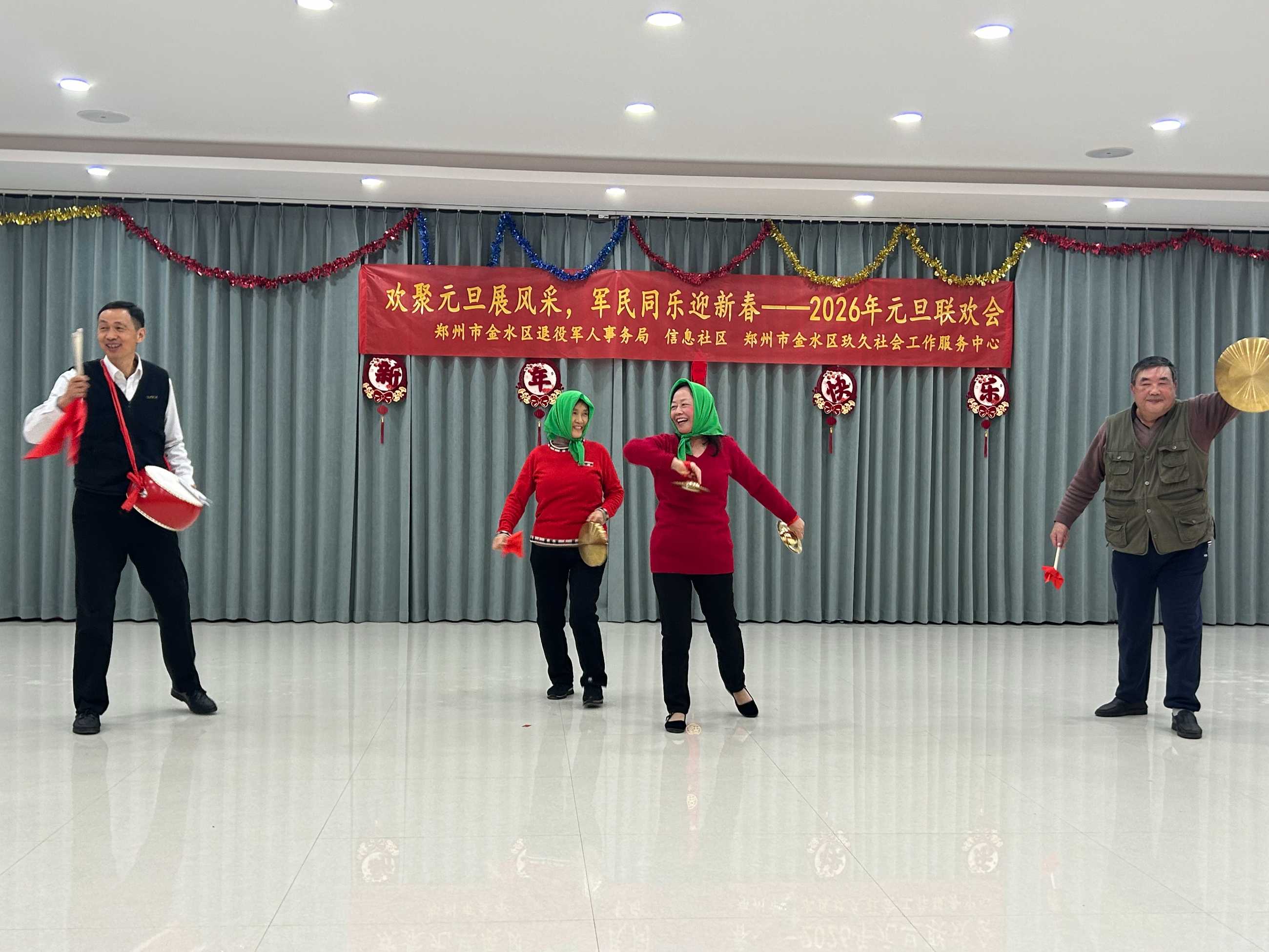 | 欢聚元旦展风采,军民同乐迎新春——2026年元旦联欢会 欢歌辞旧岁,笑语欢歌迎新年。12月29日下午,以“欢聚元旦展风采,军民同乐迎新春”为主题的2026年元旦联欢会在信息社区84号楼多功能厅隆重举行。本次活动在金水区退役军人事务局和信息社区的支持下,金水区军队无军籍退休退职职工、退役军人、军人家属以及社区居民欢聚一堂,共庆新年。 联欢会在恢弘大气的舞蹈《江山》中拉开序幕,舞者以舒展有力的舞姿,抒发了对祖国壮丽山河的深情礼赞,瞬间点燃全场热情。随后,社区合唱团以嘹亮歌声演绎《春风十万里》《情歌的故乡》,歌声如暖流淌入心田,展现了社区文化生活的蓬勃生机。演出节目形式多样、精彩纷呈。太极表演《莲花太极扇》刚柔并济,尽显传统武术之美;70后组合小合唱《珊瑚颂》《我是一条小河》旋律动人,唤起岁月深情。男生独唱《驼铃》《老了就老了》质朴醇厚,唱出人生感怀;军工女同志小合唱《来到遥远的地方》《北京的金山上》情感真挚,抒发对远方与祖国的热爱。男生小合唱《强军战歌》气势如虹,展现强军斗志;女生小合唱《映山红》悠扬婉转,再现经典红色情怀。舞蹈《牧歌一曲献给党》《甘南草原美》以舒展舞姿描绘草原壮美,表达对党与家乡的深情赞美。女生独唱《一江深情》婉转悠扬,唱出了军民之间的鱼水情深;舞蹈《绿色军衣》以柔美舞步诠释军旅情怀,引发退役军人的深深共鸣;男生小合唱《夜航之歌》铿锵有力,再现了军工战线奋斗者的豪迈气概。节目三句半《邻里情暖夕阳红》,以幽默朴实的话语讲述邻里互助故事,赢得阵阵掌声。戏曲与曲艺节目同样亮点频出。经典豫剧《朝阳沟》选段韵味十足,展示了传统文化的魅力;相声《夕阳情深》妙趣横生,展现了老年人乐观幽默的生活态度;豫歌《沁园春》将戏曲与歌曲创新融合,令人耳目一新。演出在互动对唱与激昂合唱中推向高潮。男女对唱《敖包相会》深情款款,寄托了对美好生活的向往;最后,全体演员齐声高唱《复兴的力量》《看山看水看中国》,磅礴歌声唱出了对中国梦的坚定信念,以及对新时代祖国的无限热爱,为联欢会画上圆满句号。 |